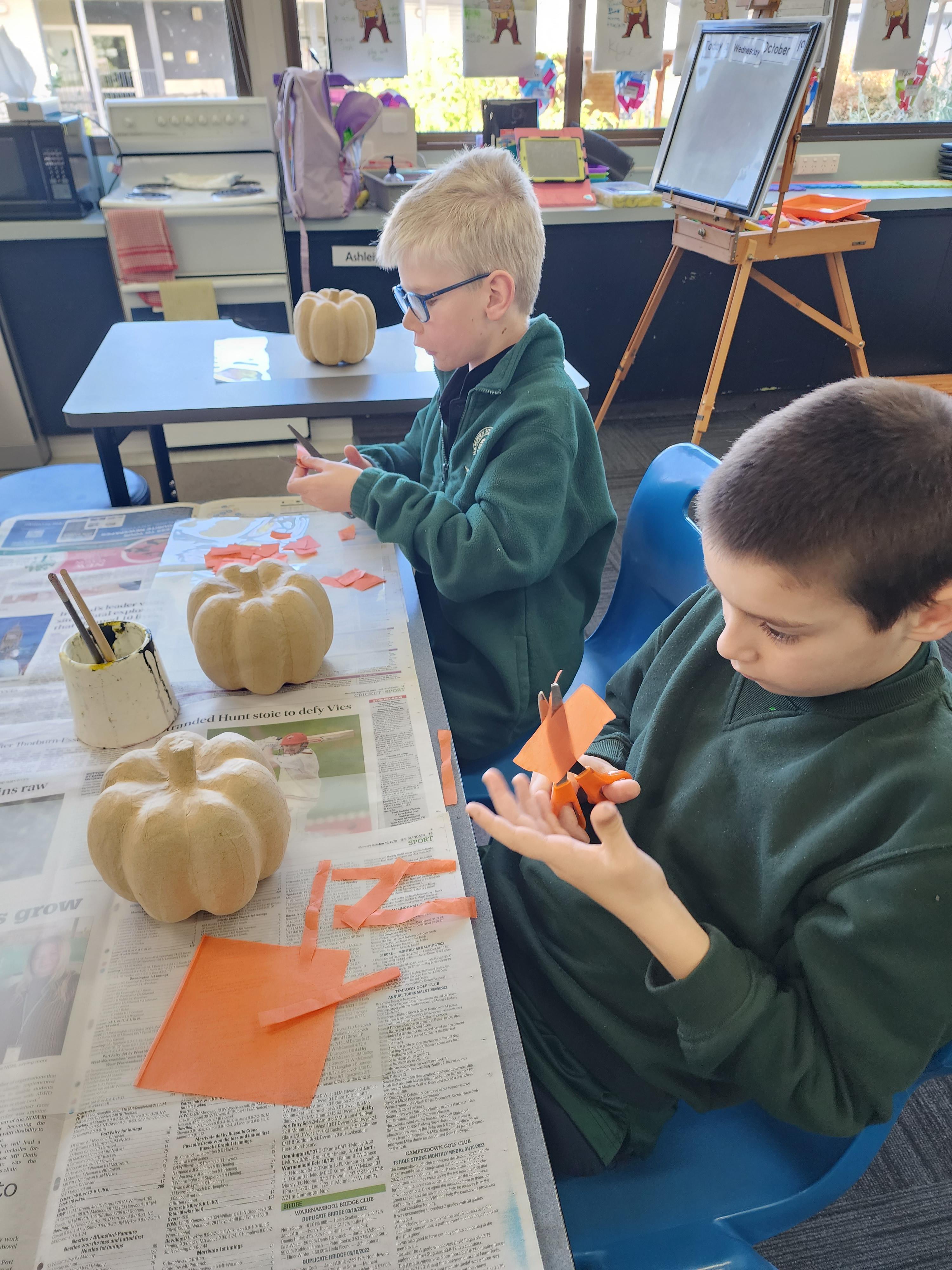 Lucy’s room have started to embrace the Halloween spirit this term. We got some paper mache pumpkins and have started to cover them in a colour of our choosing. We have some normal looking orange pumpkins and some mutant pink and blue pumpkins, perfect for Halloween!
