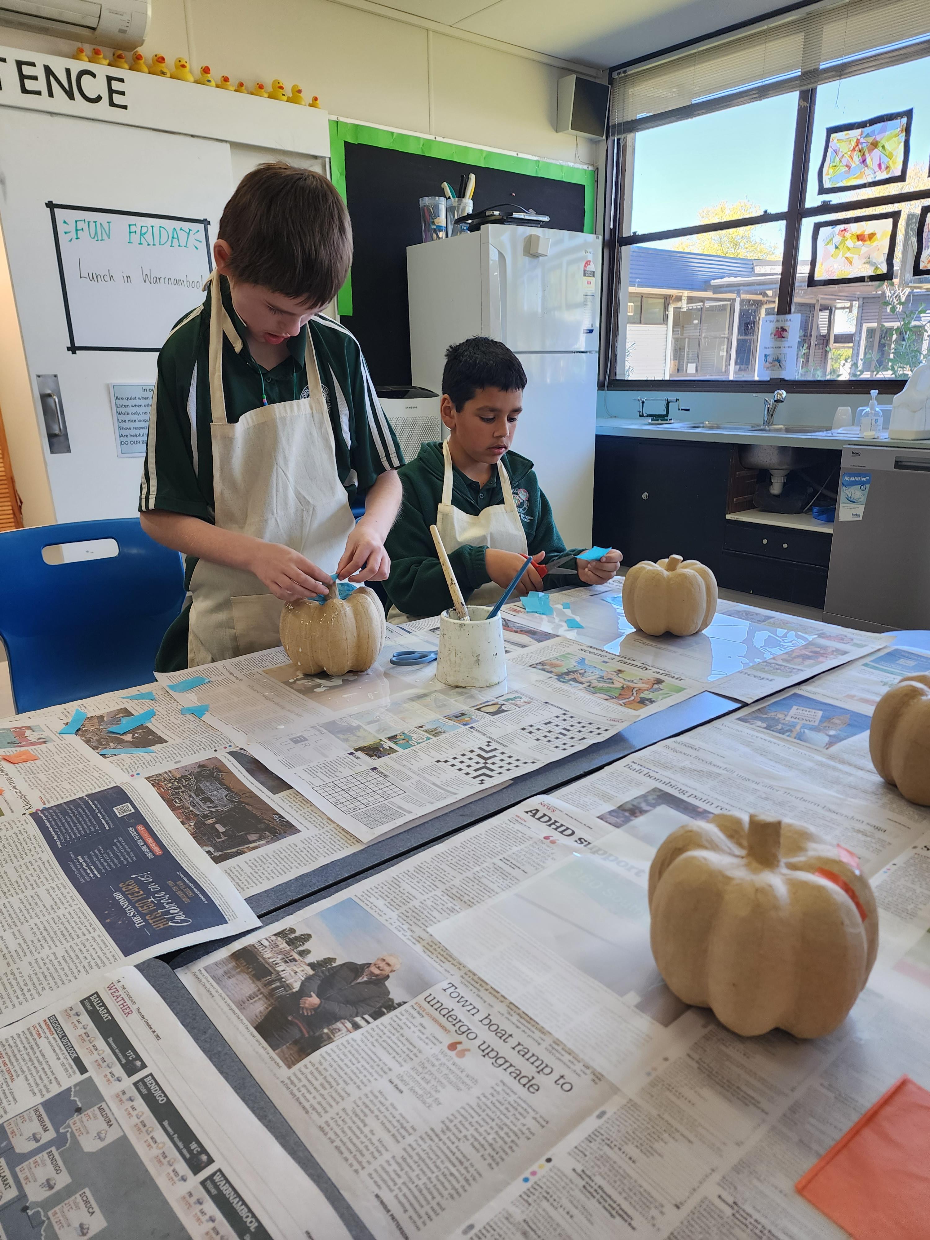 Once we have covered them with colour we will draw on some spooky faces. Hopefully we will have them finished soon so we can send them home in time for Halloween trick or treating!