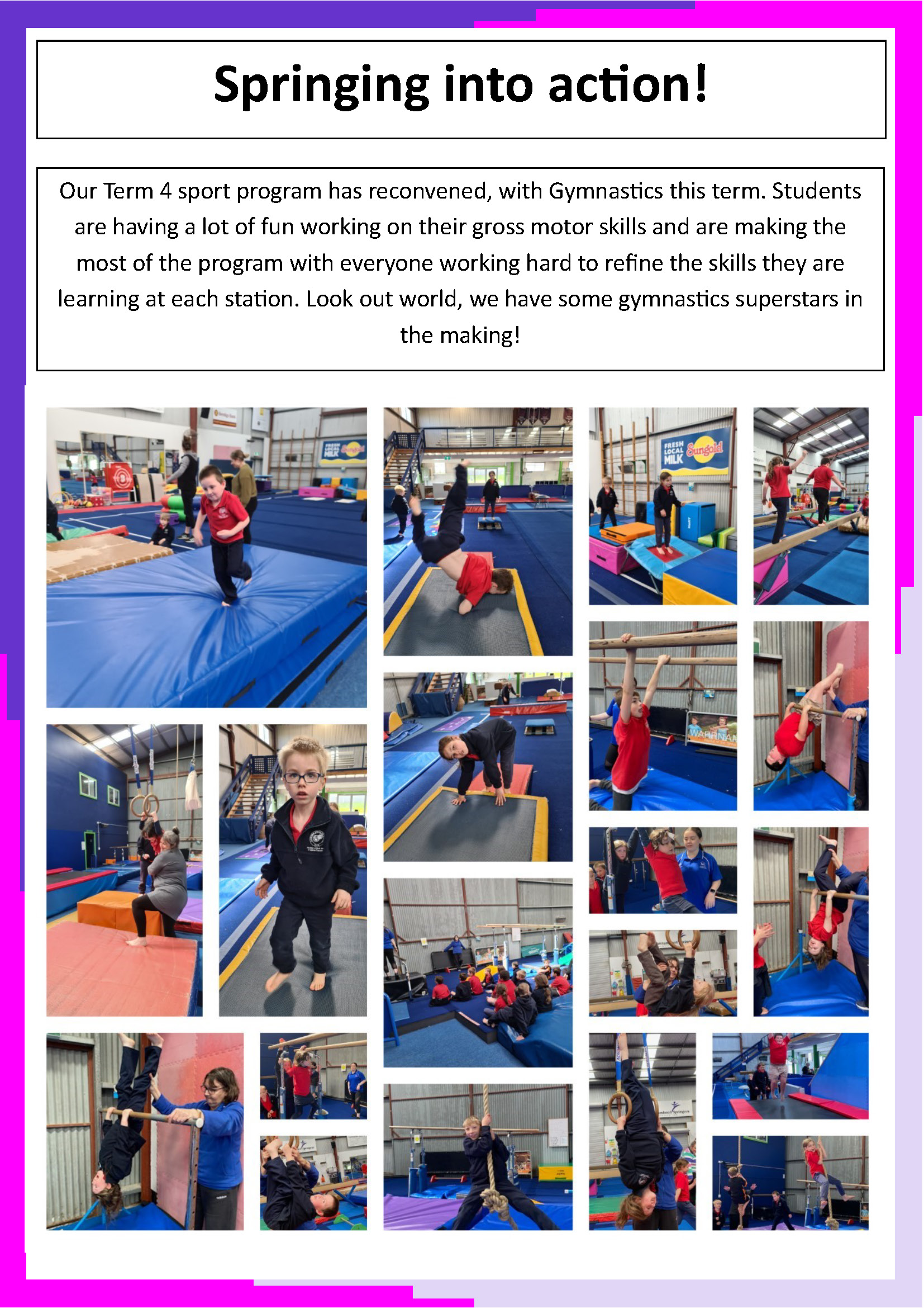 The term is well and truly underway, with students and teachers working hard on finalising their goals and assessments. Lots of excursions and end of year activities are being organised and we thank you for getting the notes back so quickly.