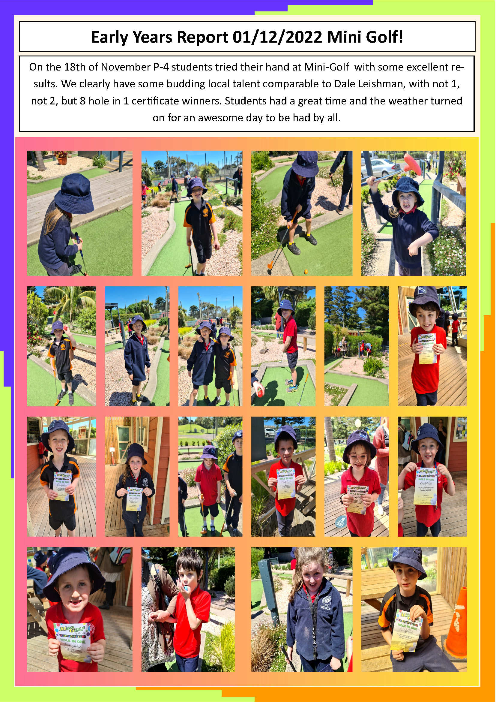 The Middle Years group enjoyed a trip to the Camperdown Gardens last Friday where we took in some nice views of Camperdown and surrounds. We were lucky to receive some very nice weather on the day which made for a lovely walk around the garden. Students enjoyed a treat of some hot chips while we were at the gardens and also a picnic lunch. It was great to see our students enjoying the outdoors and doing a great job of representing our school.