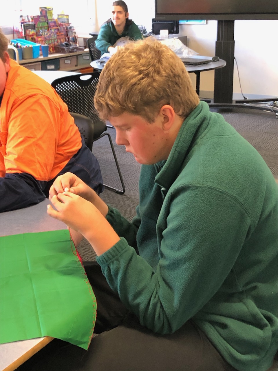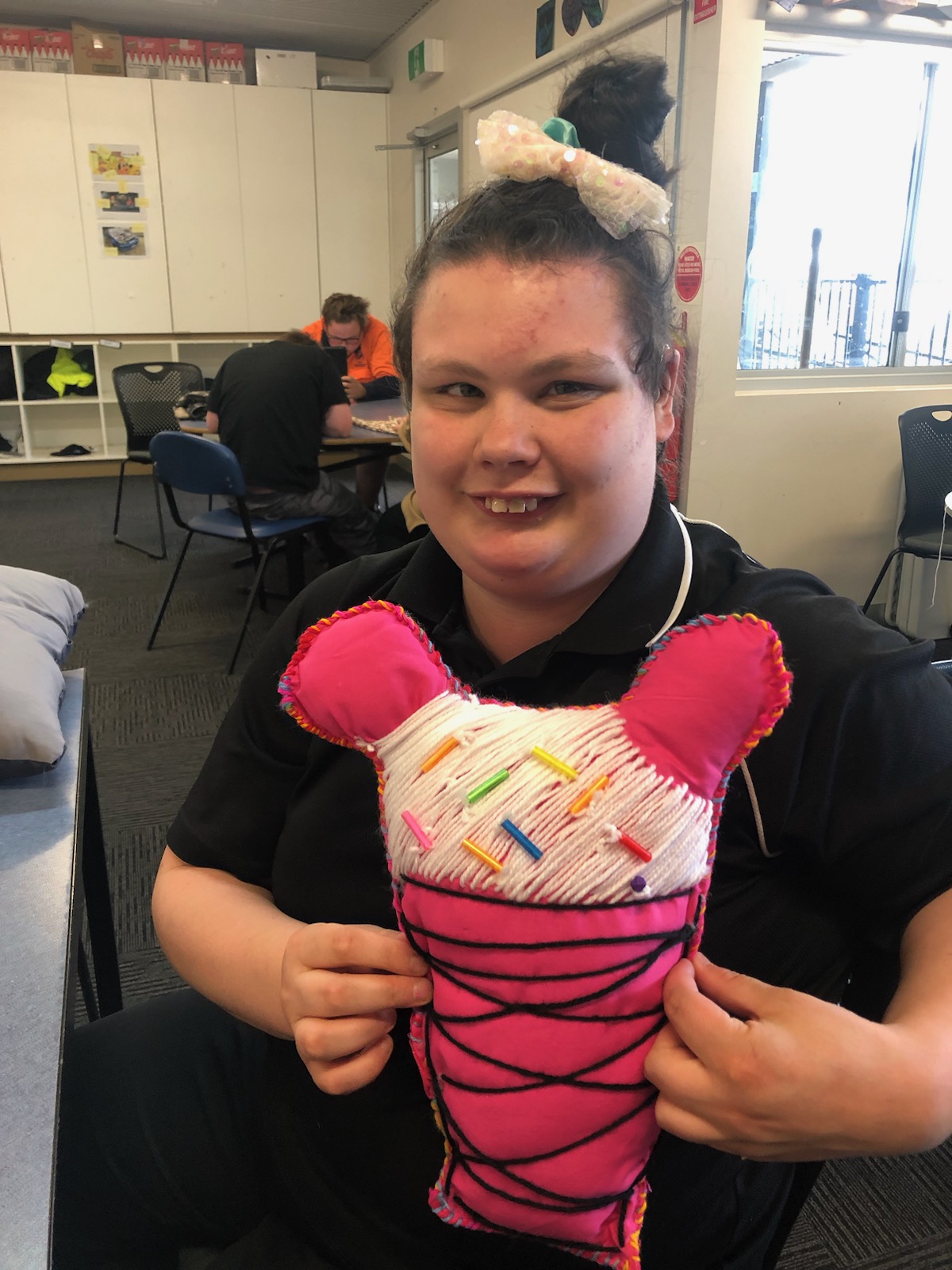 “Making cushions is really hard but my cushion is looking really good. Mine has patterns on it with buttons” -Jye
