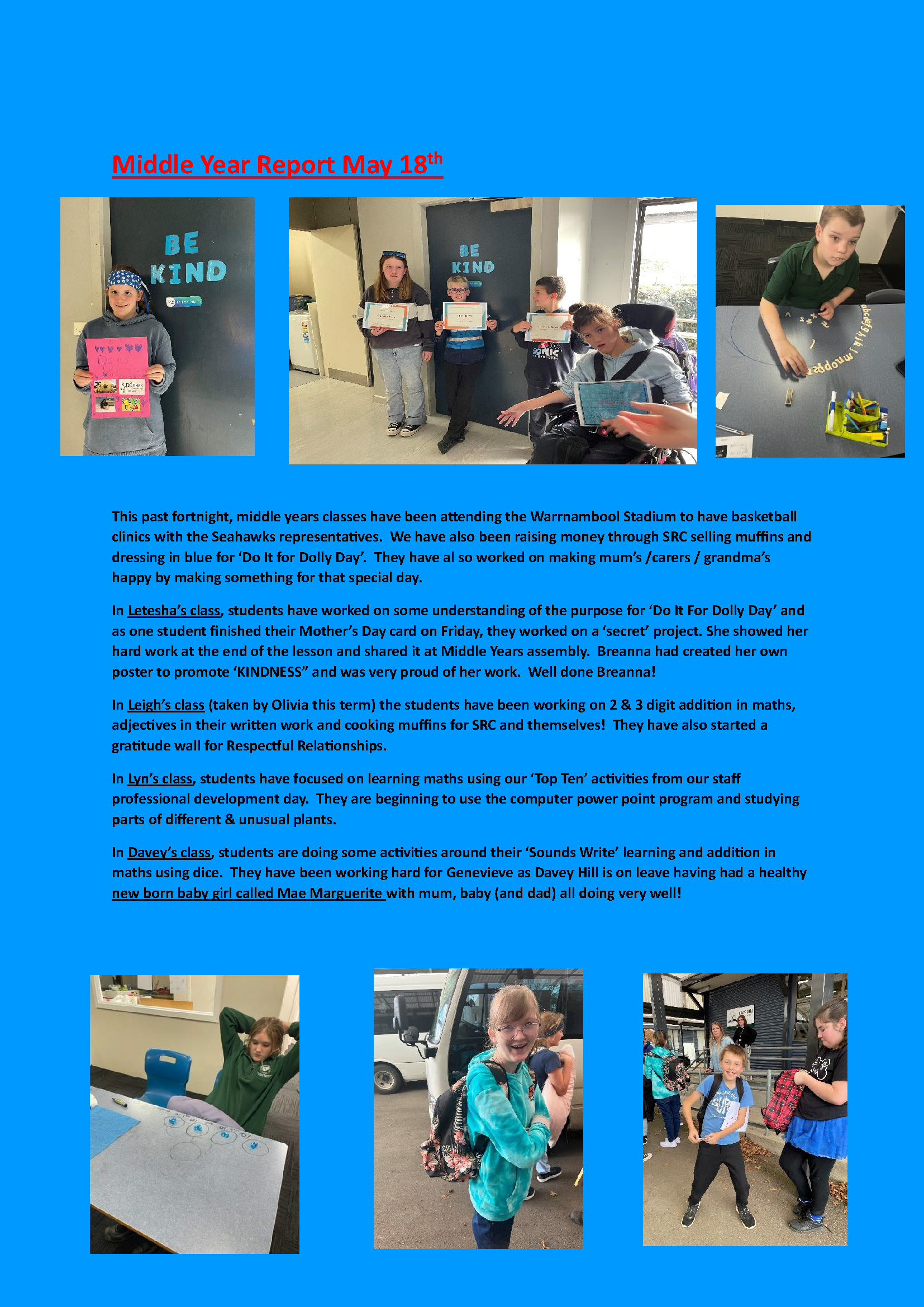 It is hard to believe we are nearly halfway through term 2, students have settled in well to their learning and continue to work hard towards their goals.