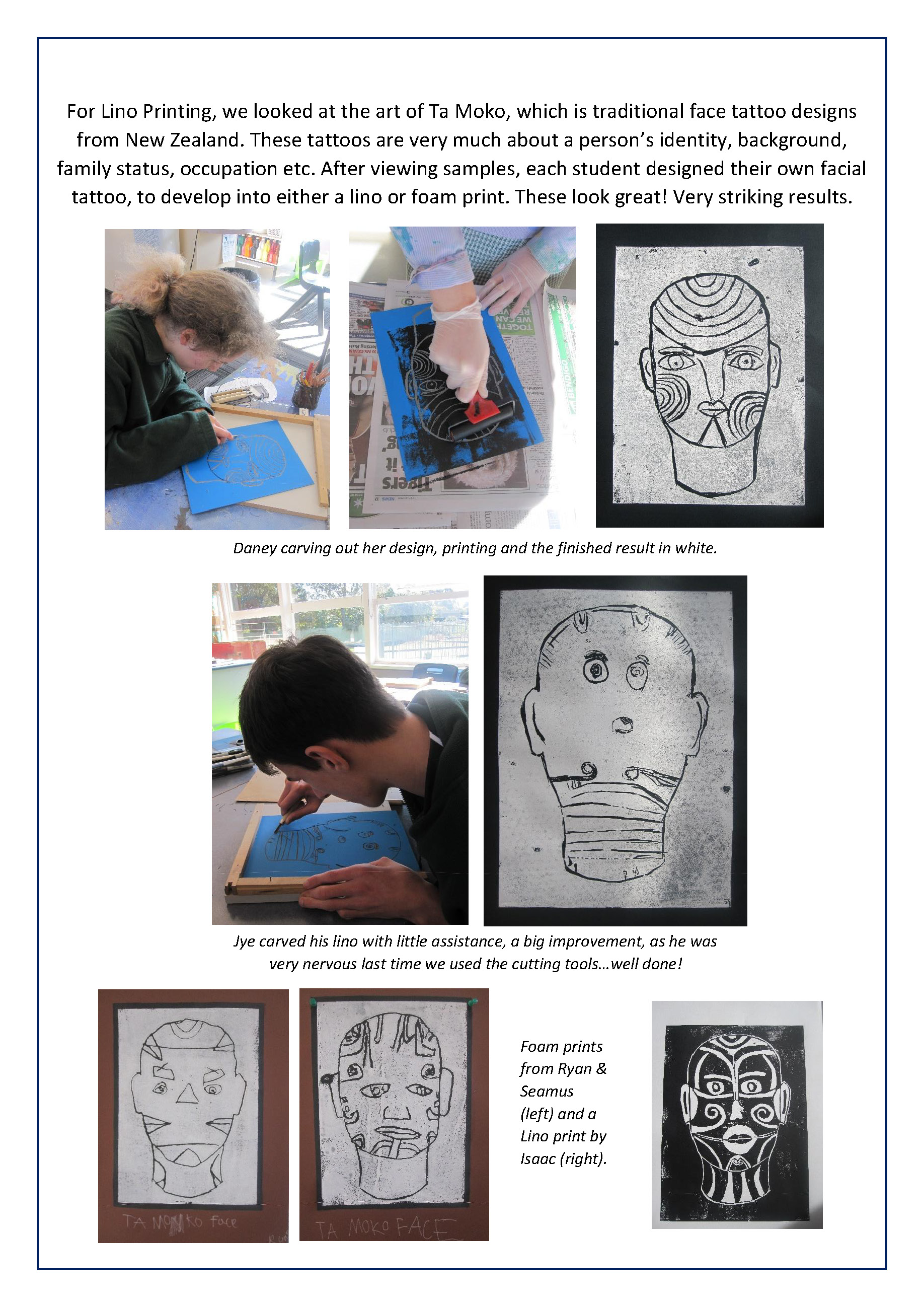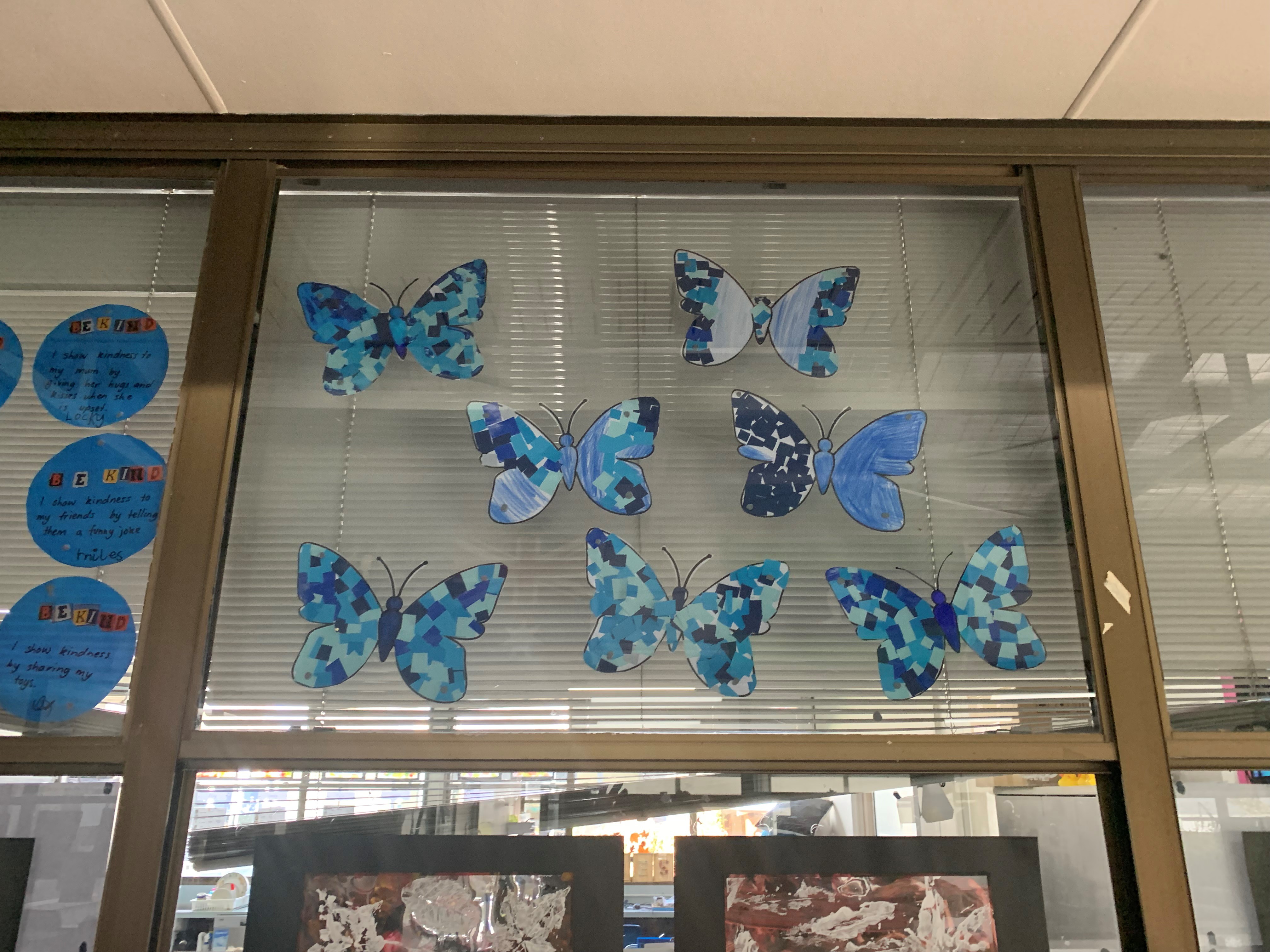 Dollys Dream is for a kind and safe community for all Australian children. Our school was decorated in posters, buntings and blue butterflies which symbolize Dollys Dream. In art class the students made blue butterflies using lino cutting. And as a fundraiser for Dollys dream, on Friday, we had hotdogs for lunch and wore clothes with a touch of blue.