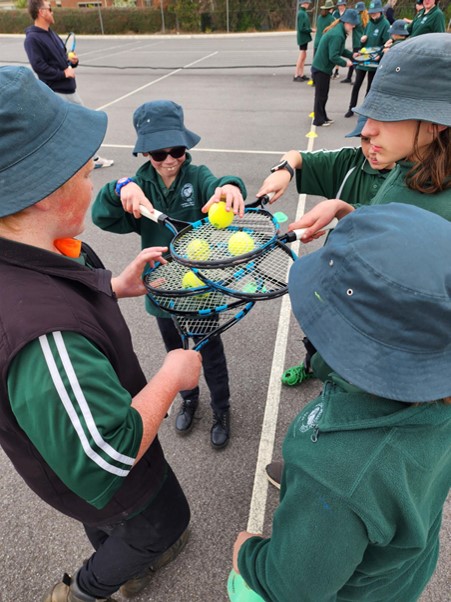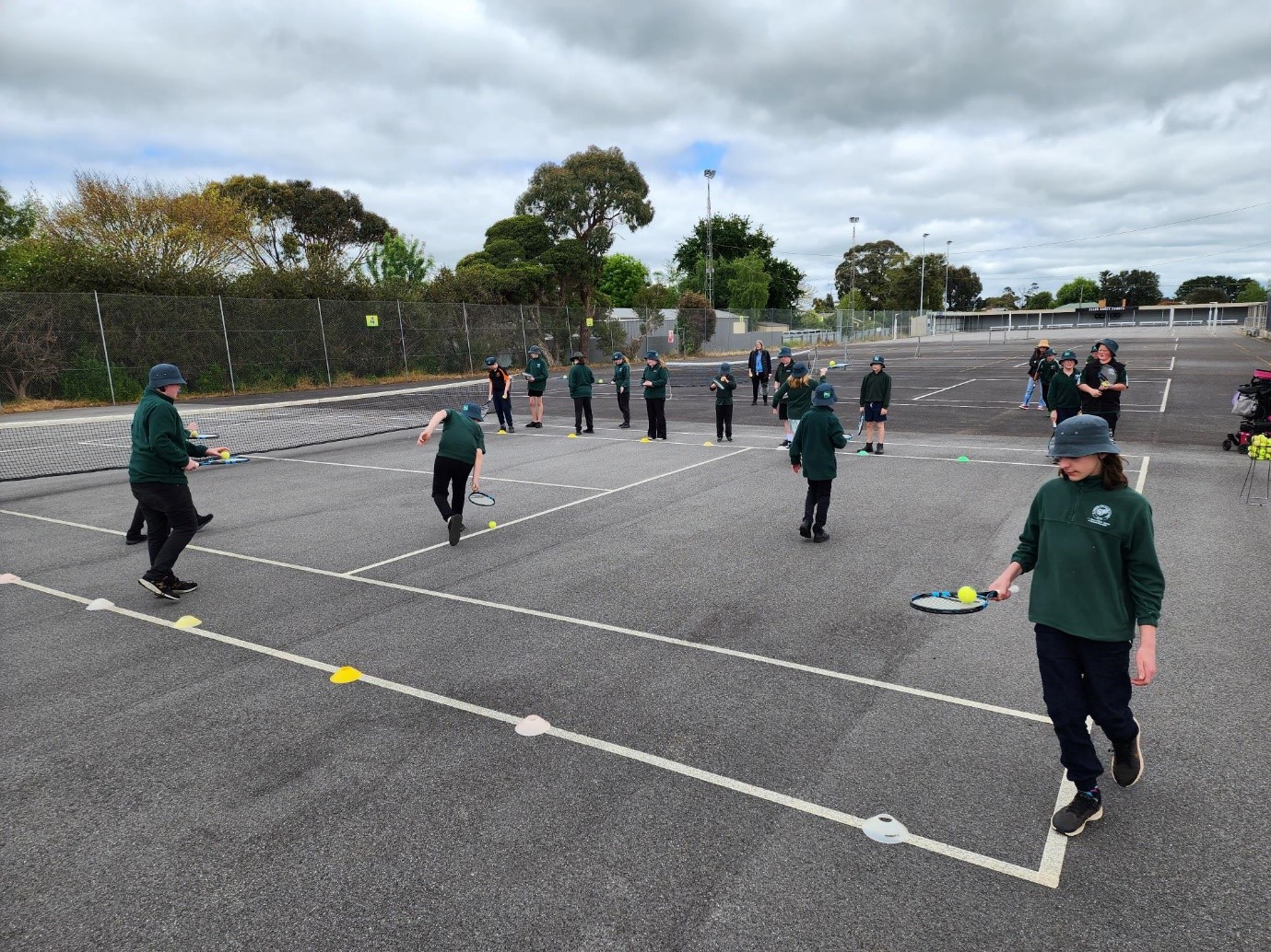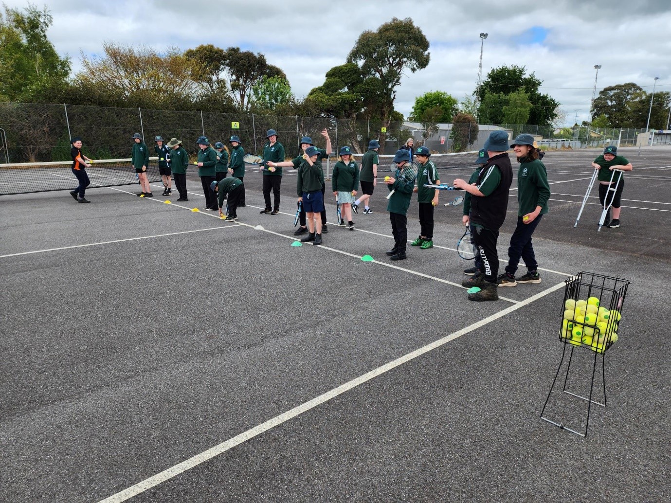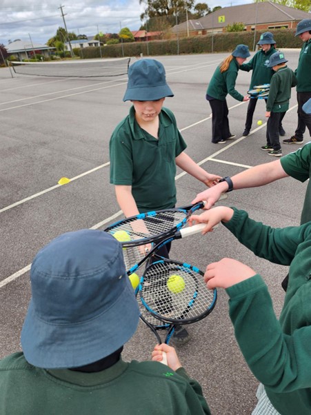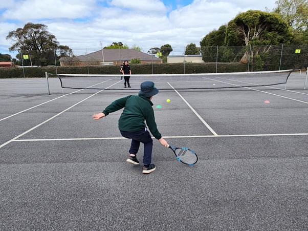 For the last two Tuesday’s, Middle years have participated in a Tennis clinic. We have driven to the Cobden tennis courts for these sessions. During the clinic we have been learning how to hit the ball, practising hitting the ball up in the air, hitting back and forth with a partner and also doing some teamwork activities. The weather has been really nice for our Tennis sessions, it has been sunny and hot.