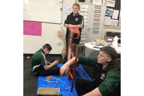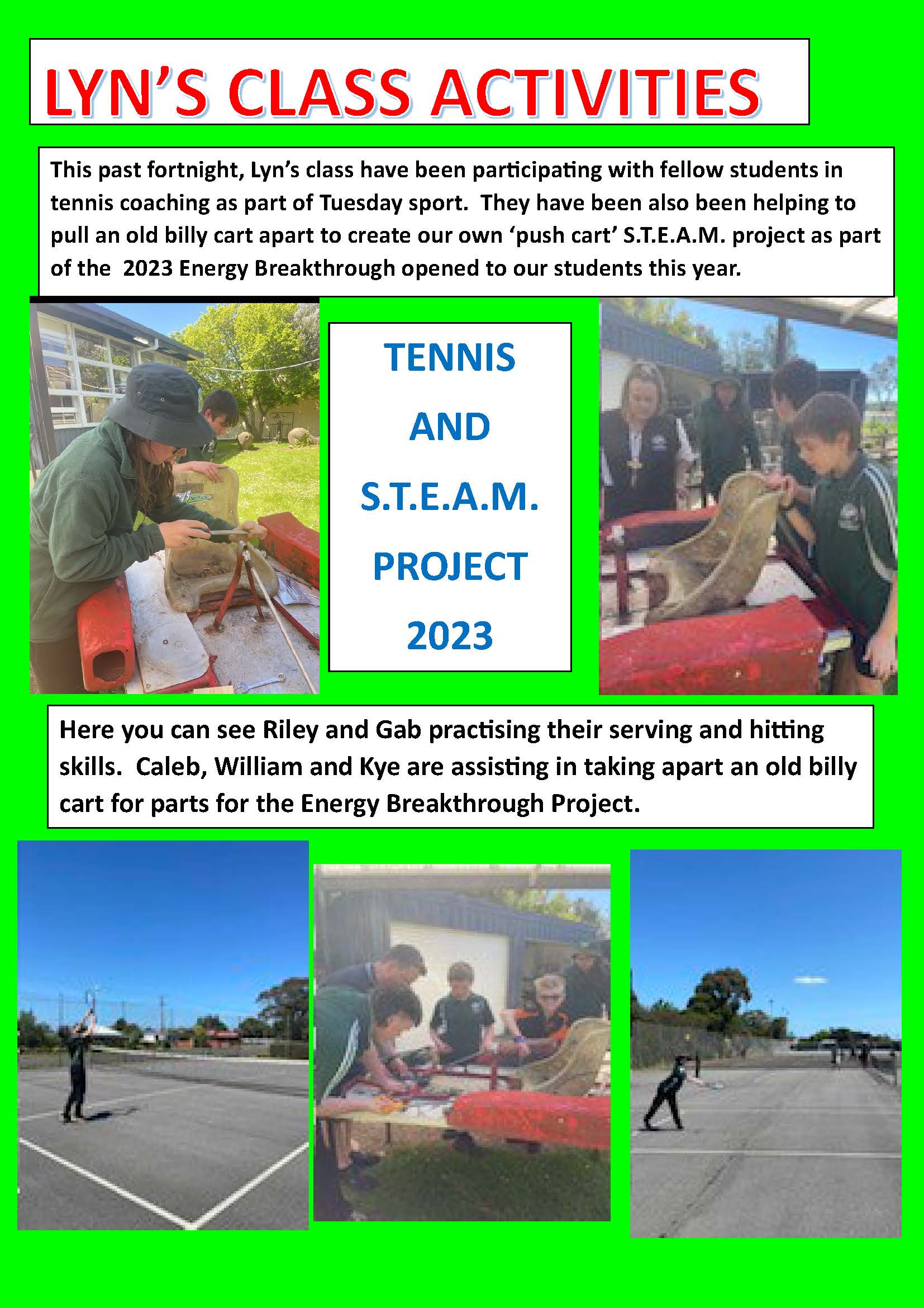 We had to gather some materials for Energy breakthrough. Teesh ordered timber from Parlour’s in Simpson and got it delivered and got some of it cut by Davey and Brad. Sally brought in old tents for when they go to Maryborough but they’re still in her car and she brought in old pool noodles that we can use. Brodie brought in his go kart so we could take parts off it for our go kart.