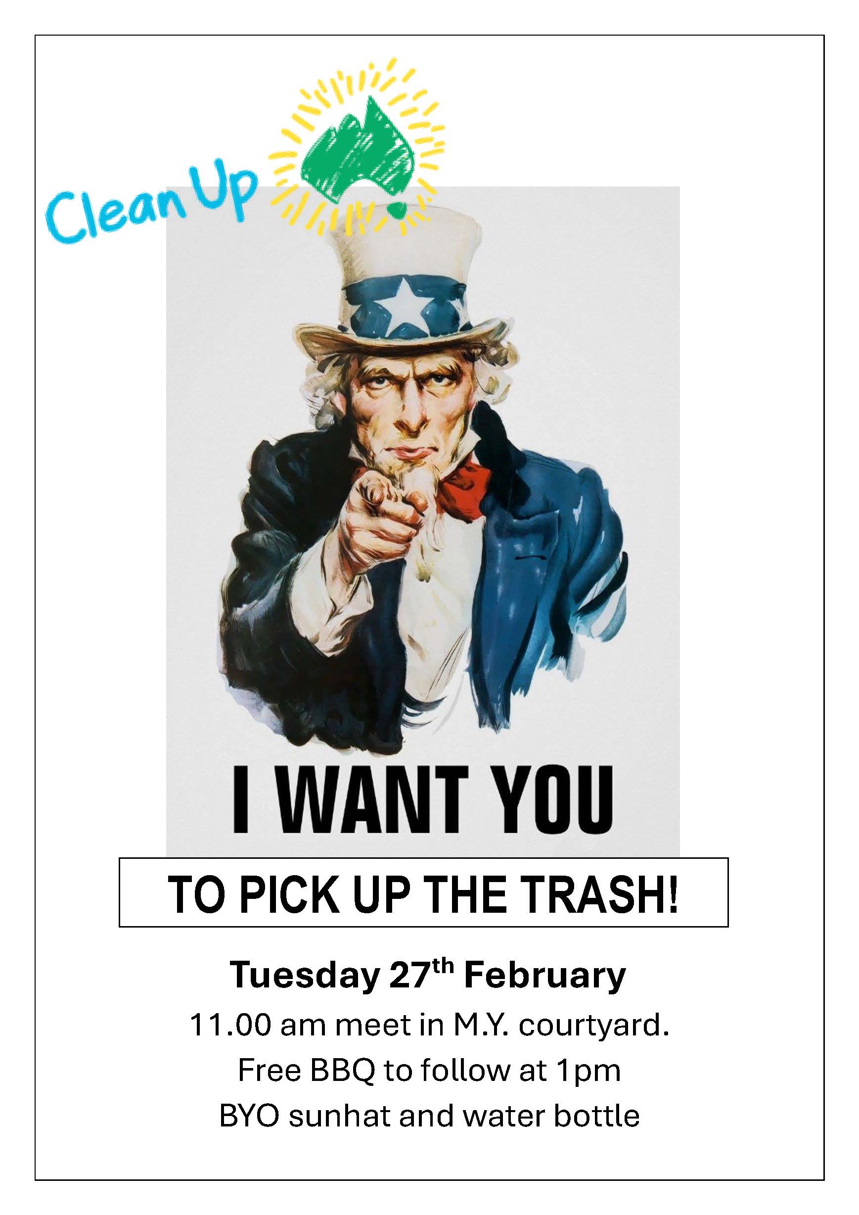 All students are invited to participate on Tuesday 27th February from 11am. We will split into groups and clean up areas of Cobden and around our school. A free BBQ with sausages will be available for all students afterwards. Can all students please ensure that they bring a water bottle to school.