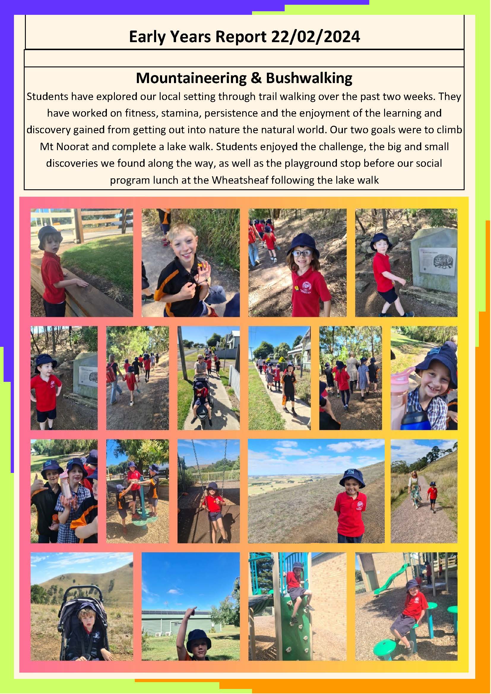 Our first school review day kicks off on Monday with Validation Day at Terang with our panel of experts, the idea of the panel is to review our past 4 years of education and develop a new plan for the next 4 years. There will be a focus on wellbeing and learning, celebrating our strengths and identifying areas for improvement within the school. On Monday 4th March we welcome all parents to a parent forum at our Cobden Campus at 10:00am to meet with the panel and share your views and ideas. Morning tea will be provided. We encourage as many parents as possible to attend as your voice counts and matters.