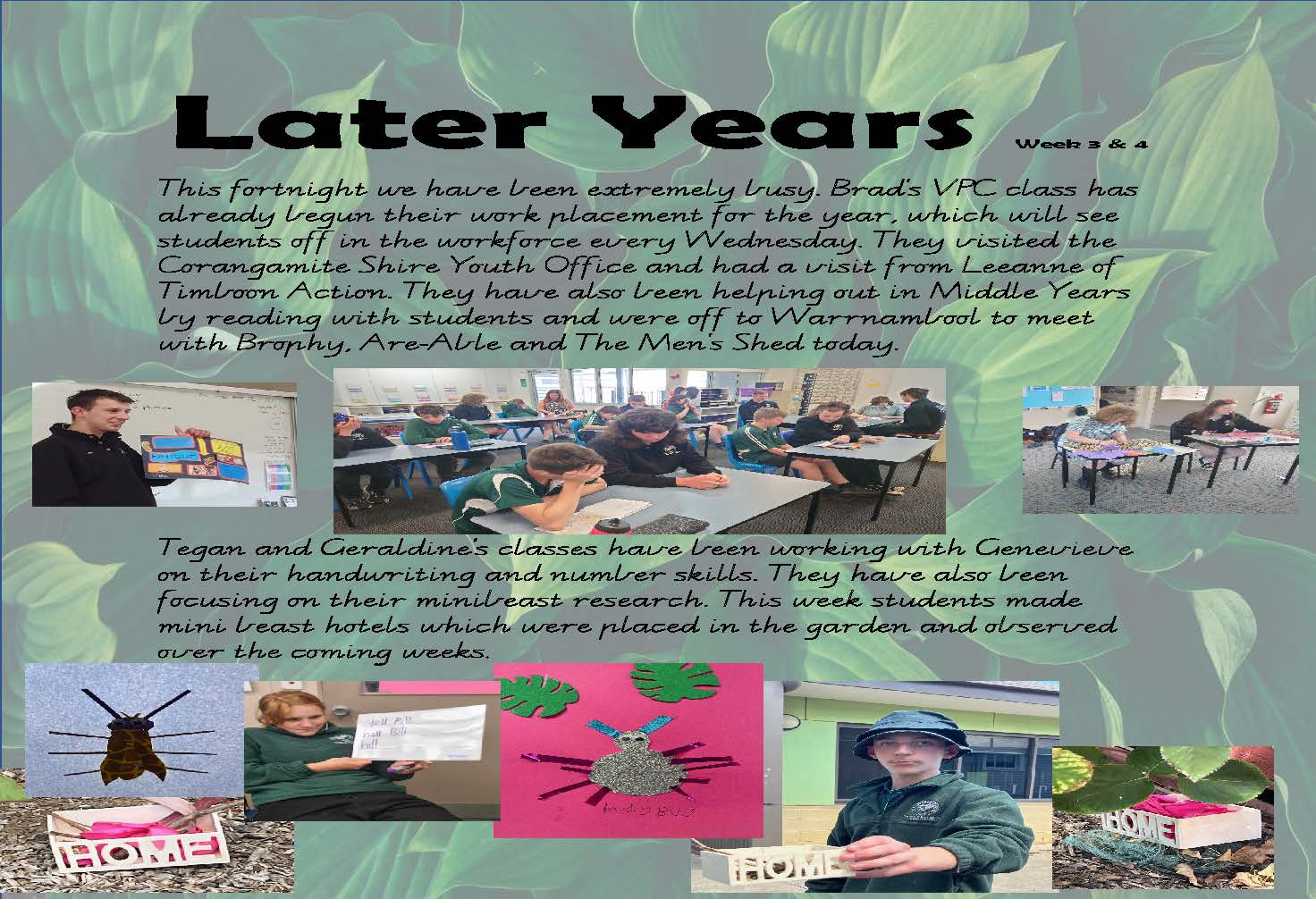 Term 1 is well and truly under way, with students already working hard towards their goals, staff have been busy writing learning plans and establishing relationships within their classes.