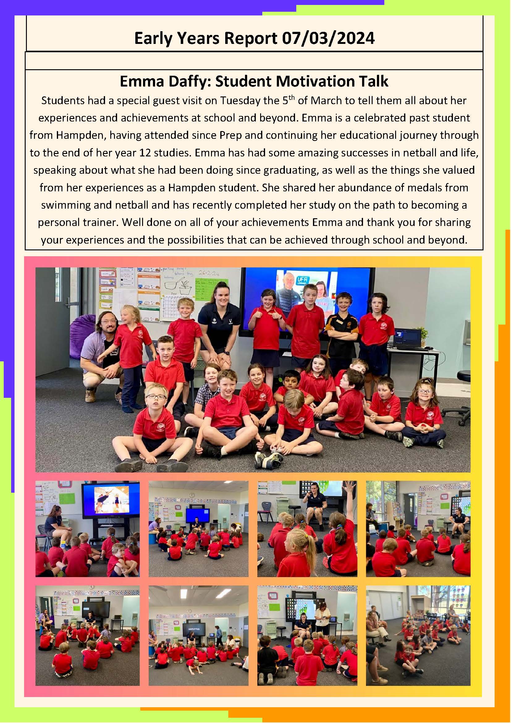 As many of you known for the last 2 weeks our school has been undergoing our 4 year review. This gives the opportunity for our school community including staff, families and students to contribute to our celebrations and goals moving forward in the next 4 years. As part of our panel we have had school president Kristie Simpson, school council member Anthony O’Connor, Cherie Kilpatrick (area SIEL), Kath Tanner principal from Terang College and Ben Tait from Horsham Special as our challenge partners and Fiona McKenzie the independent school reviewer, we thank all of these people for their commitment and diligence in working towards a new plan for our school that captures new directions to improve our student outcomes.