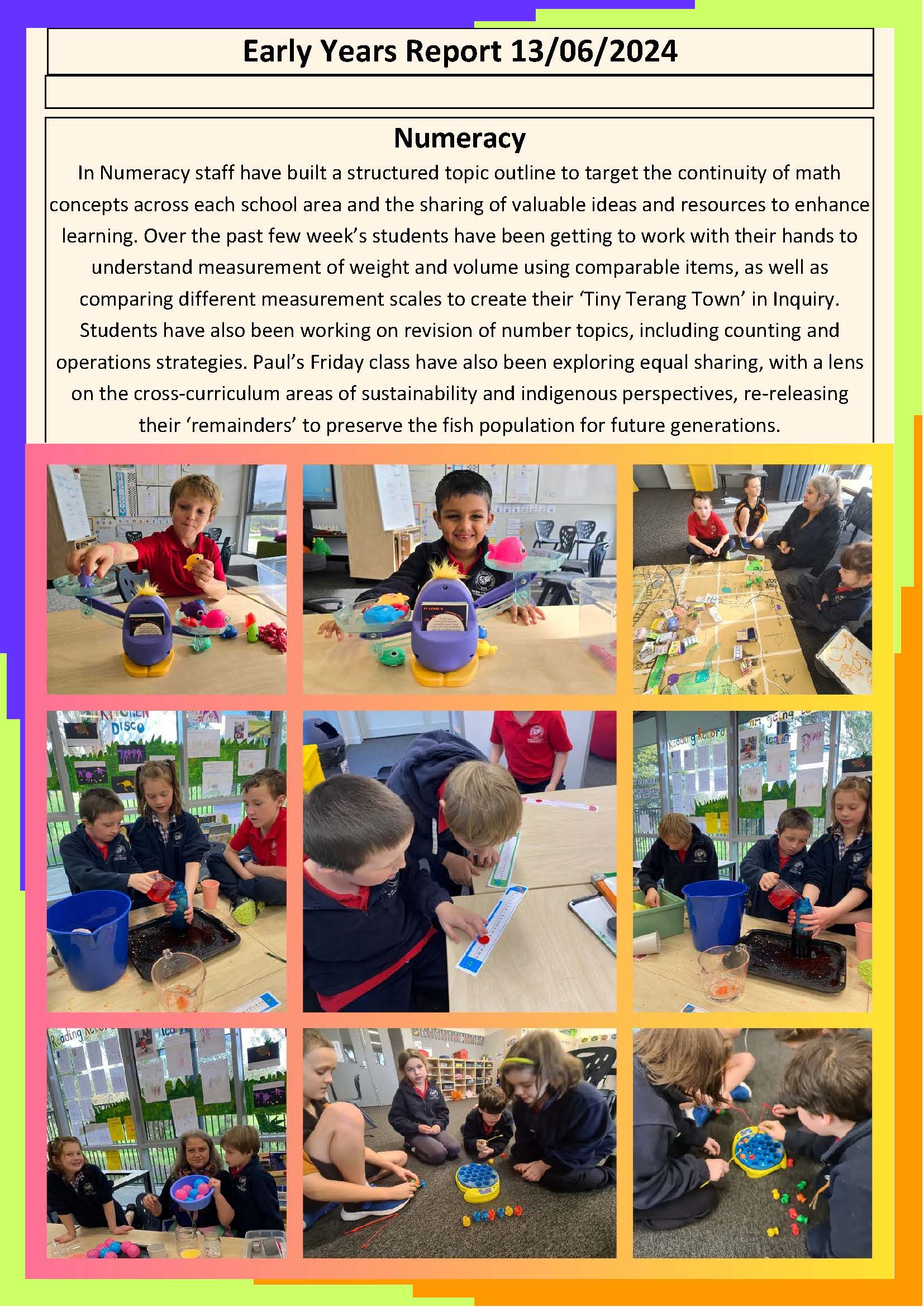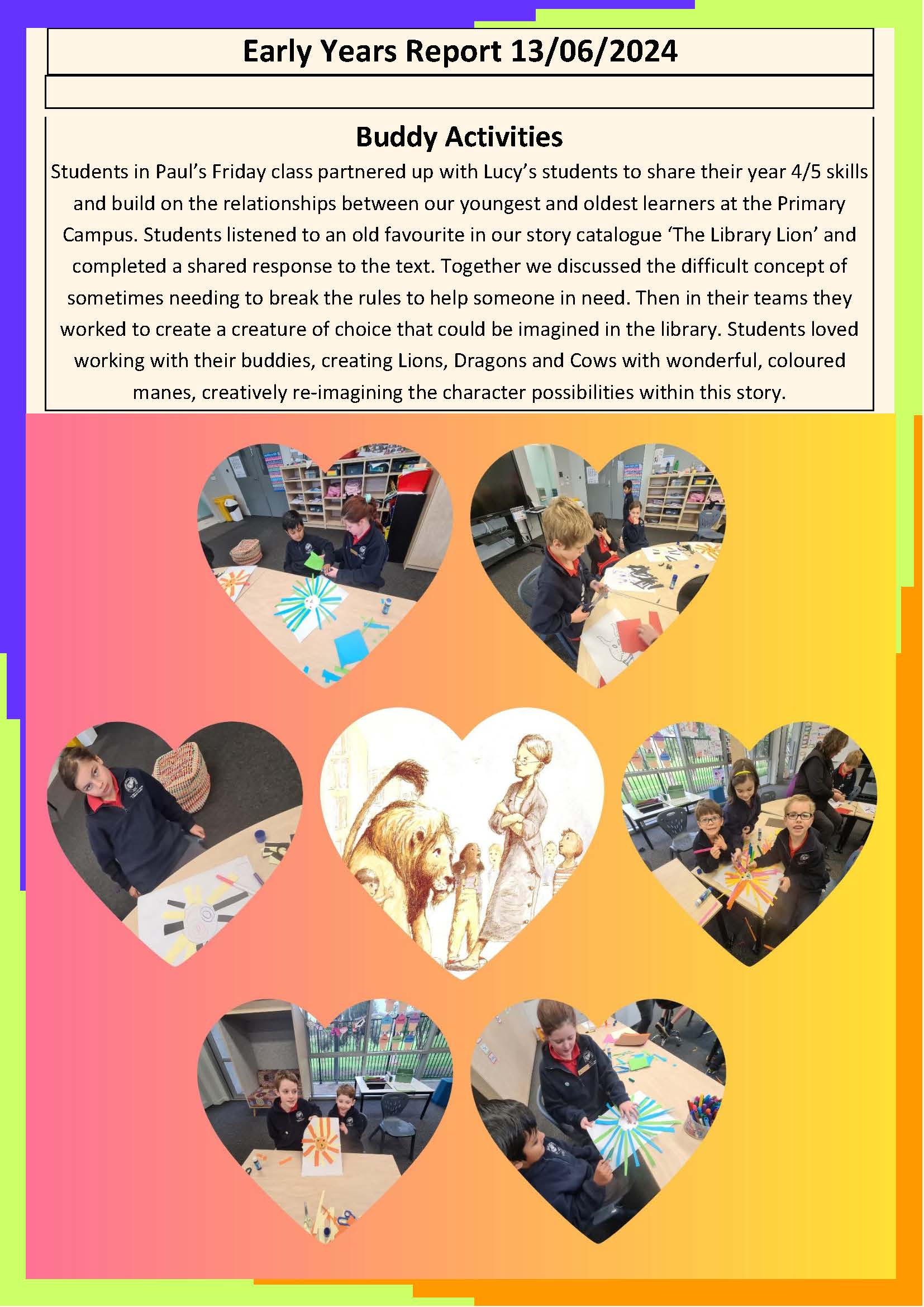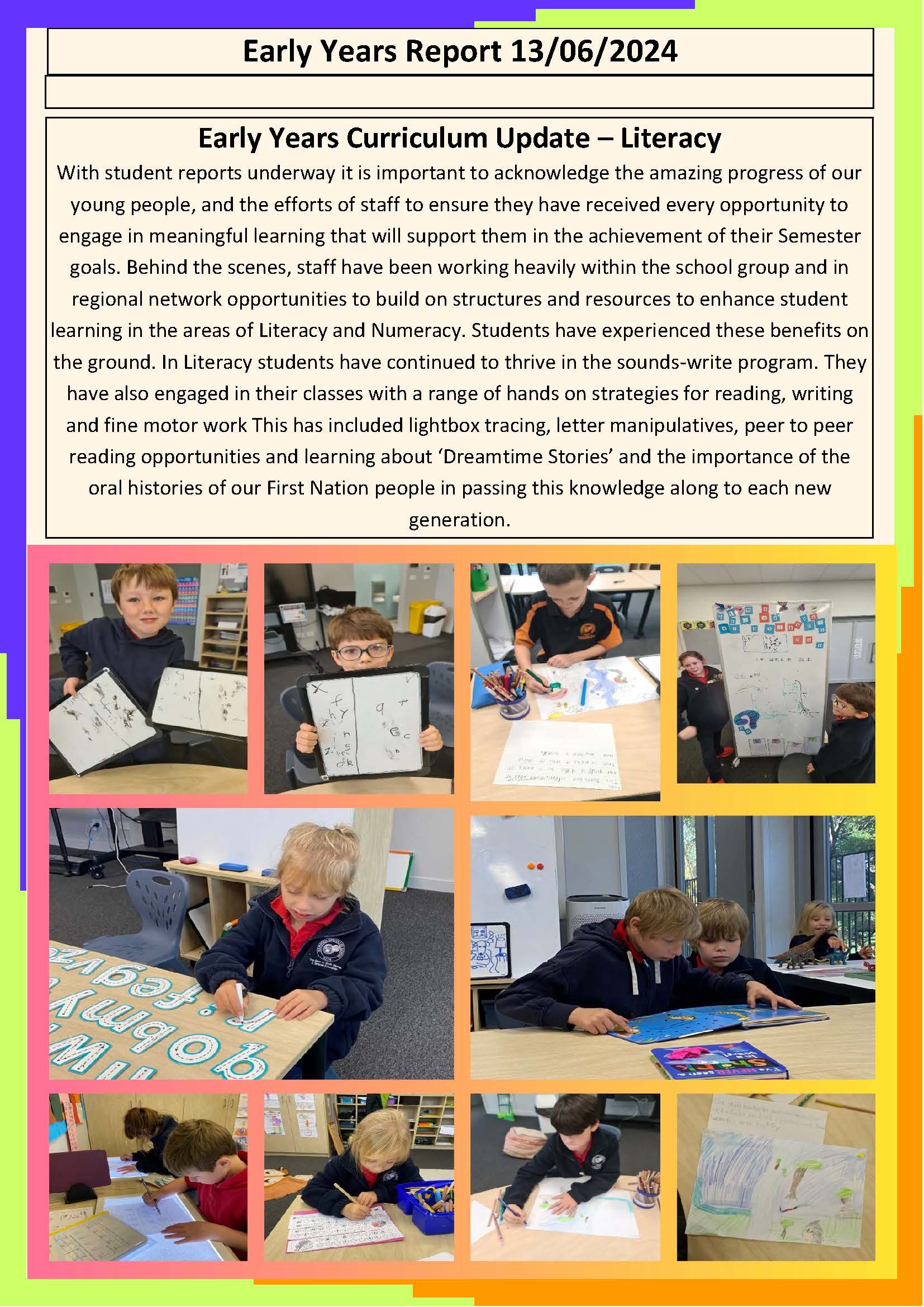 Reports will go home next Thursday 20th June, please look out for these in your child’s bag. School will finish for the last day on Friday 28th June at 2pm, please expect your child an hour earlier than usual. Early Years students will be on camp so please see itinerary for further information.