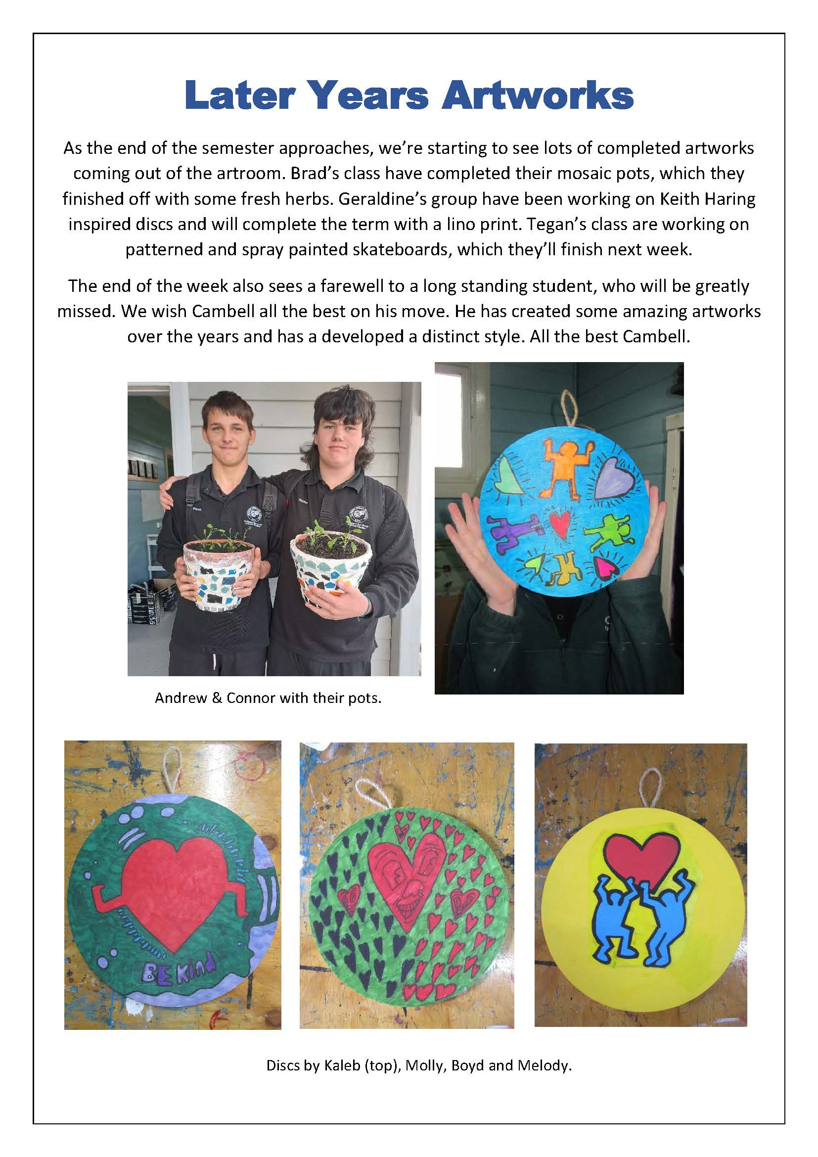 As the end of semester approaches, we are seeing lots of finished pieces coming out of the art room. Well done to those students who created colourful discs and mosaic pots.