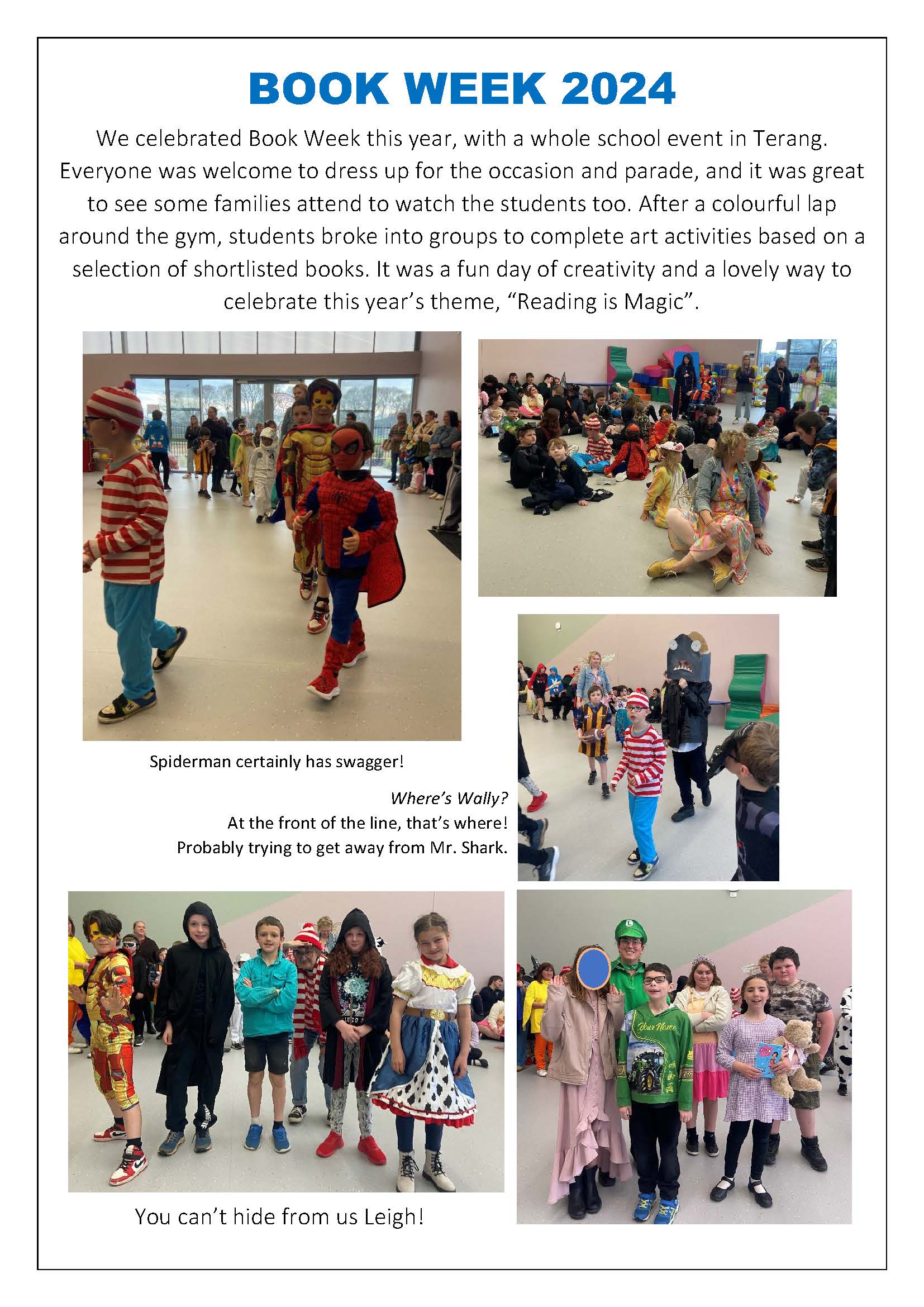 What a great turnout we had for Book Week this week from families and friends on Tuesday at Terang. The students looked fantastic in their dress ups as did the staff. Tash did a fantastic job at organising all the activities and the parade for the day. Check out our photos on facebook!