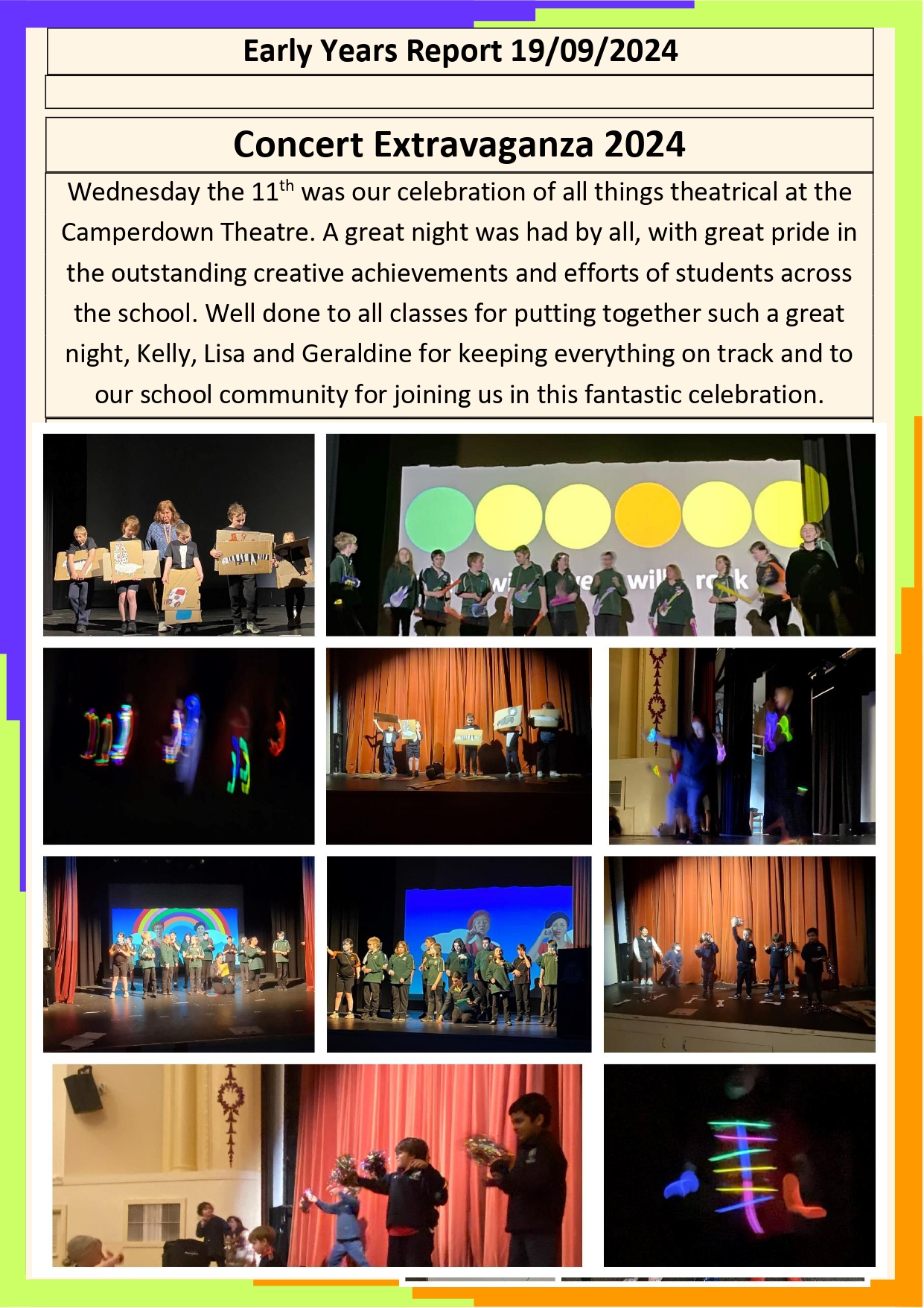 Congratulations to all our hardworking students, staff and families on our fantastic concert last Wednesday night. The students were so excited to perform on stage for their families and had worked so hard all term to rehearse their amazing acts. A big thank you to Kelly, Gerry and Lisa for all their hard work in bringing this amazing extravaganza together.