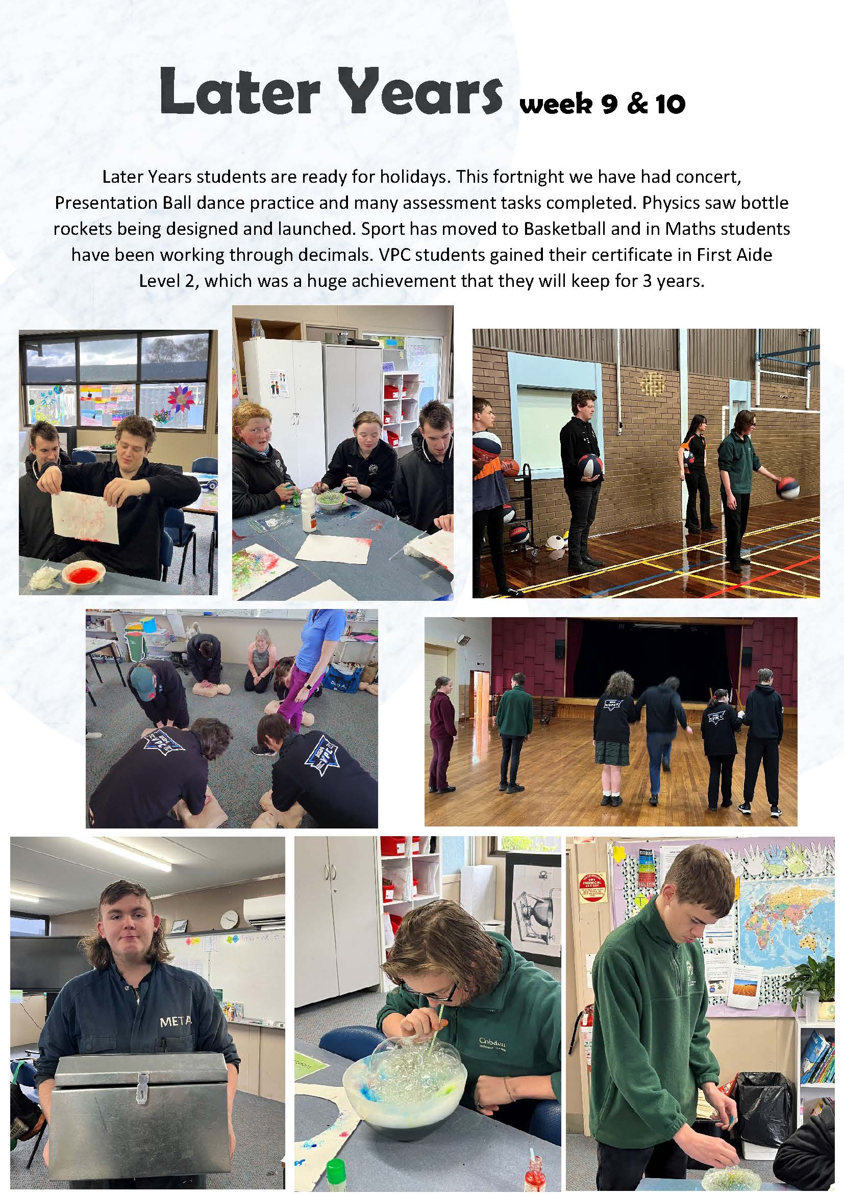 Next term we have the Presentation Ball on Friday October 18th at the Camperdown Theatre Royale at 7pm. The students are enjoying dance training and have chosen some funky tracks to dance to. We are also lucky enough to secure Jo Beard from the Corangamite Shire who the students will be presented to on the night.