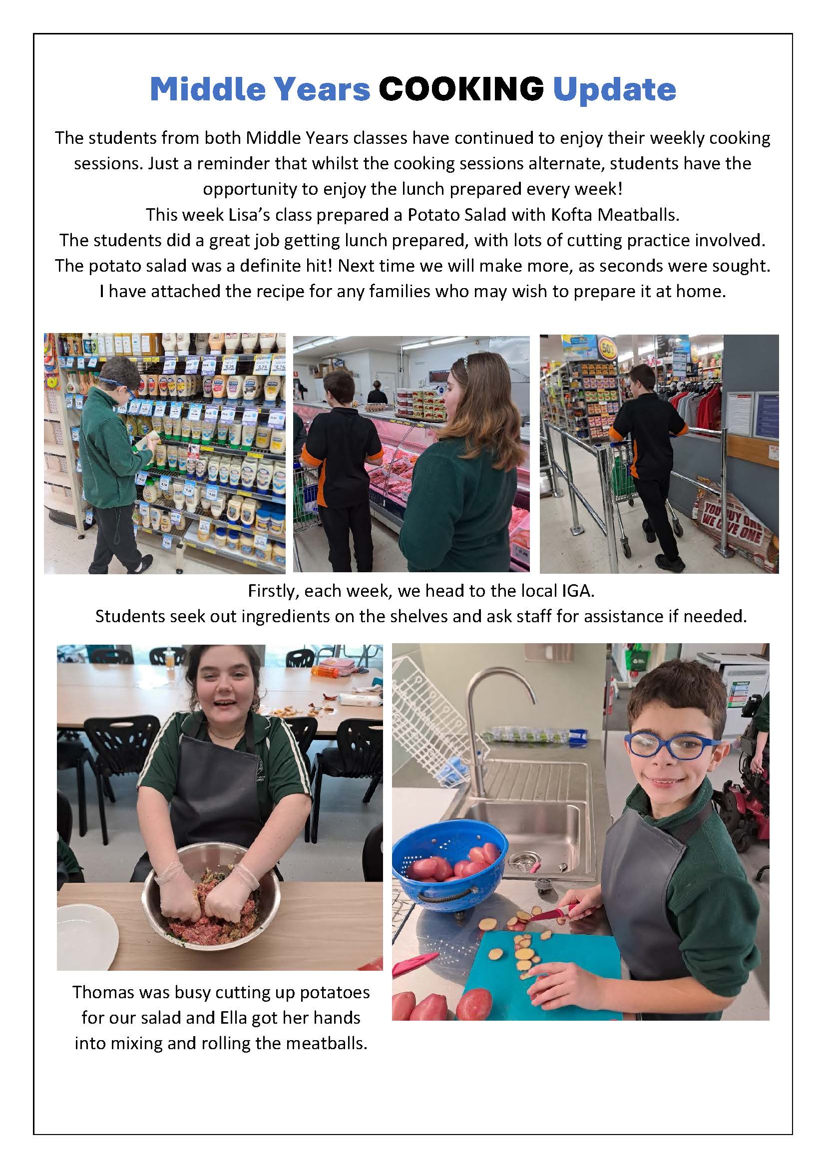 Lisa’s class did a great job preparing Potato Salad and Kofta Meatballs for Middle Years students to enjoy on Wednesday.