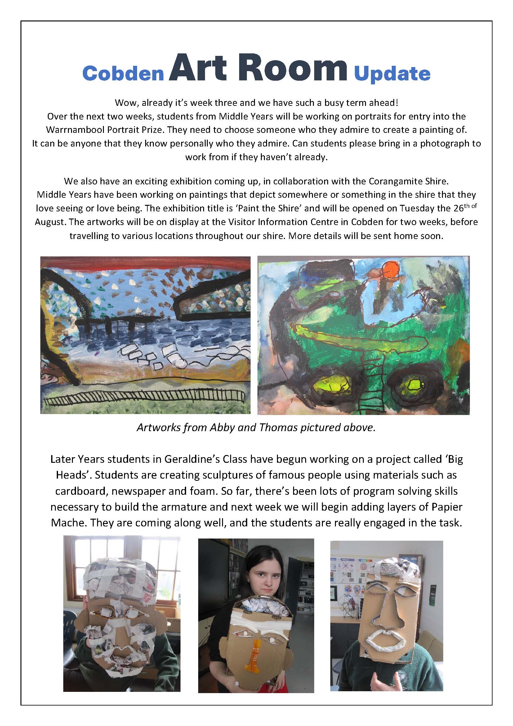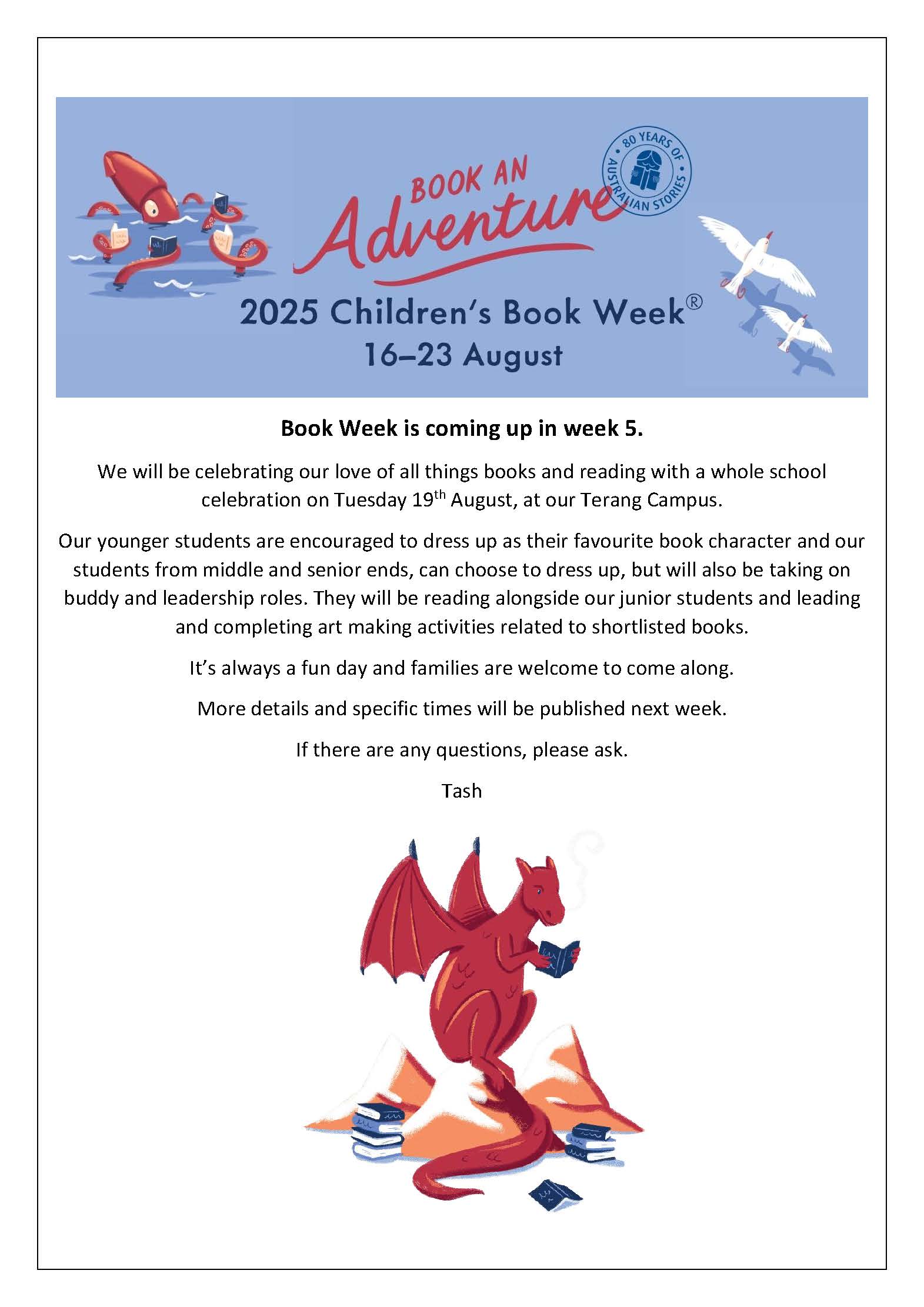Book Week activities are happening in week five, as well as an exciting exhibition in collaboration with our local shire.