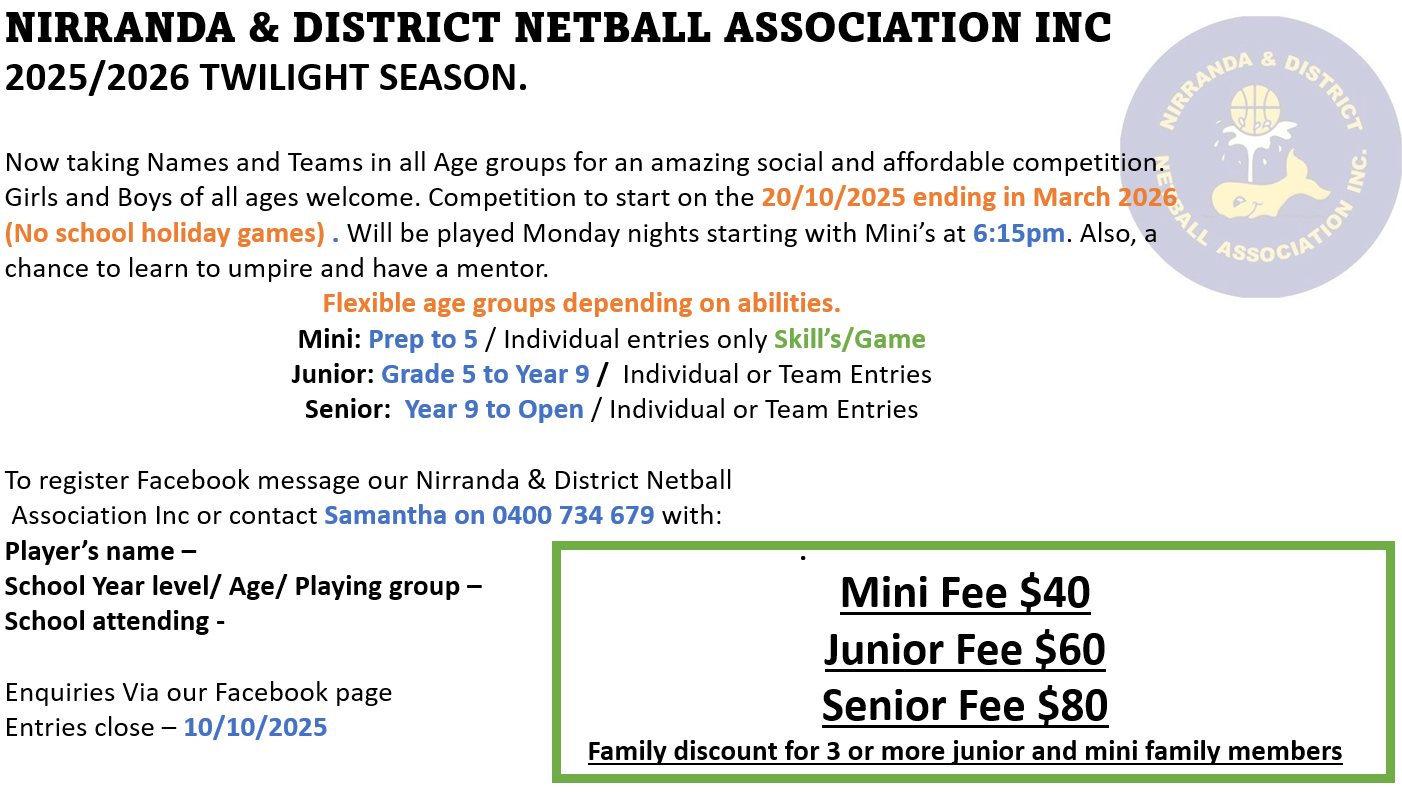 Please contact the office if you would like more information.