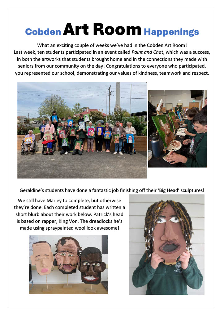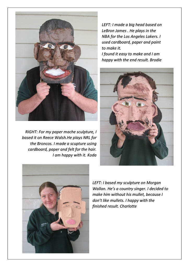 Students from Geraldine’s class have completed their ‘Big Head’ sculptures.