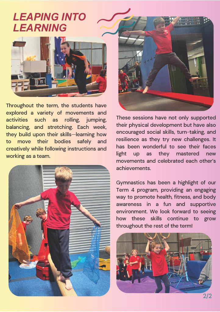 The term is quickly disappearing with us being over halfway through the term, which also means only a few short weeks until Christmas. Teachers are busy assessing student learning and growth in Literacy and Maths, and it is very exciting to see the growth our students are making.