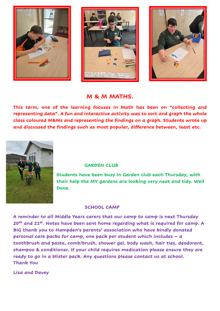 The Middle Years staff and students are busy finalising the final details of camp next week. Camp Cooriemungle is a fantastic camp with lots of opportunities for the students to test themselves on the high ropes, canoeing and a variety of other activities, but most of all they are looking forward to the disco on Thursday night.