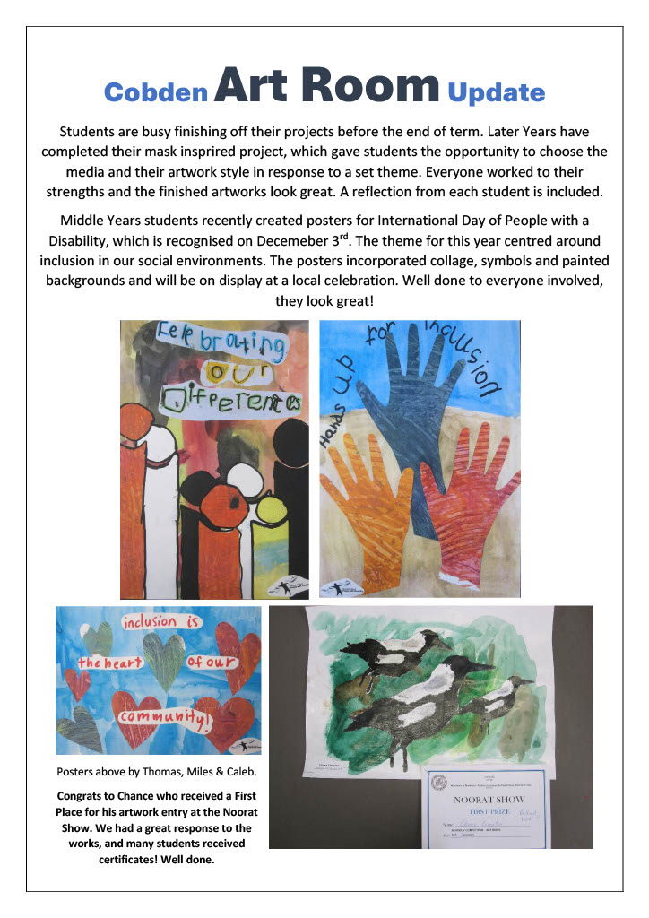 Middle Years have completed posters celebrating inclusion in our community. They also had great success at the Noorat Show. Well done to everyone involved!