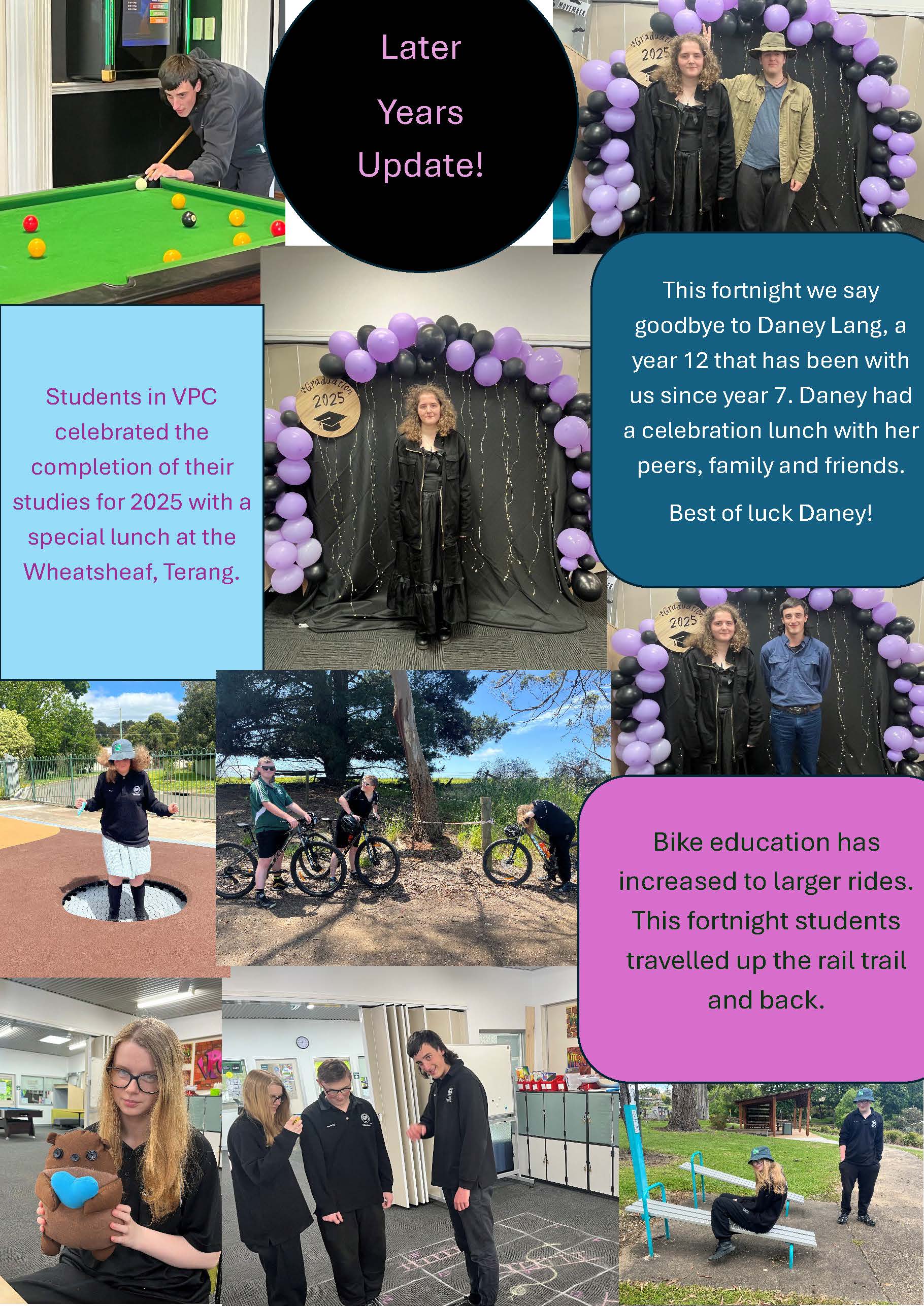 Later Years have been busy completing their projects and have written reflections, included in this newsletter report.