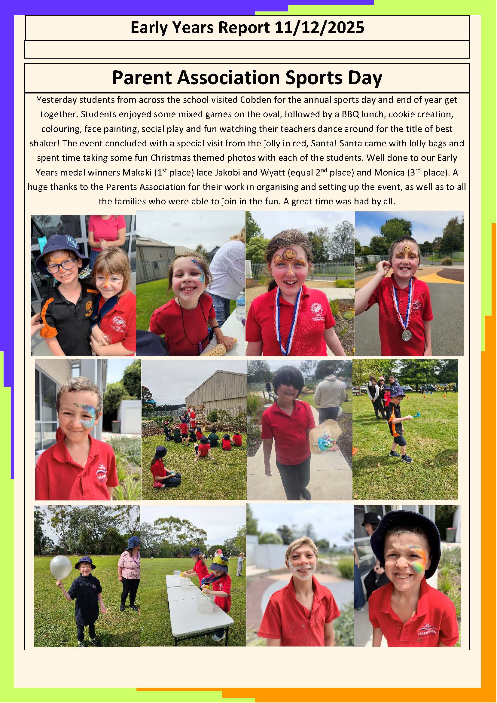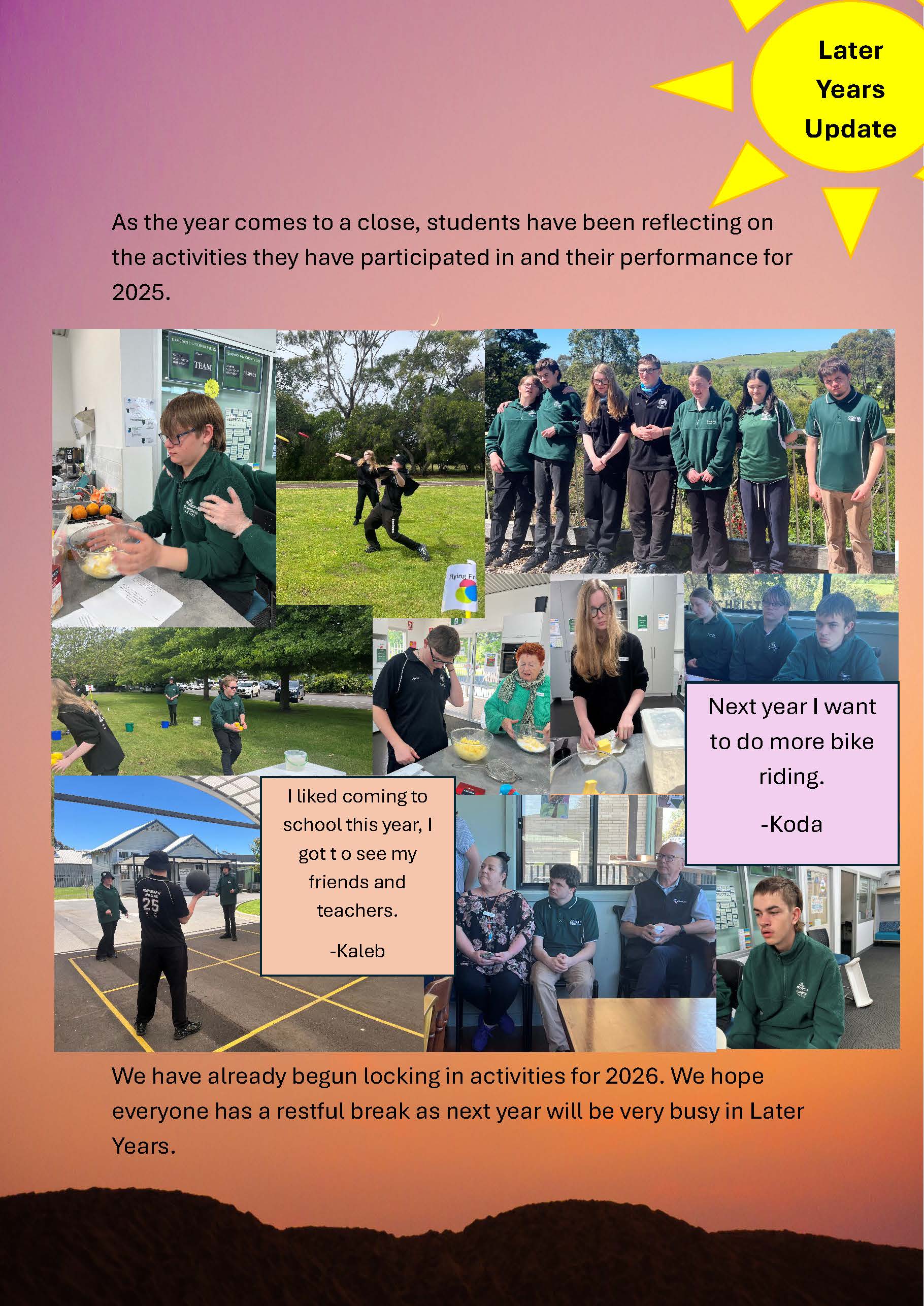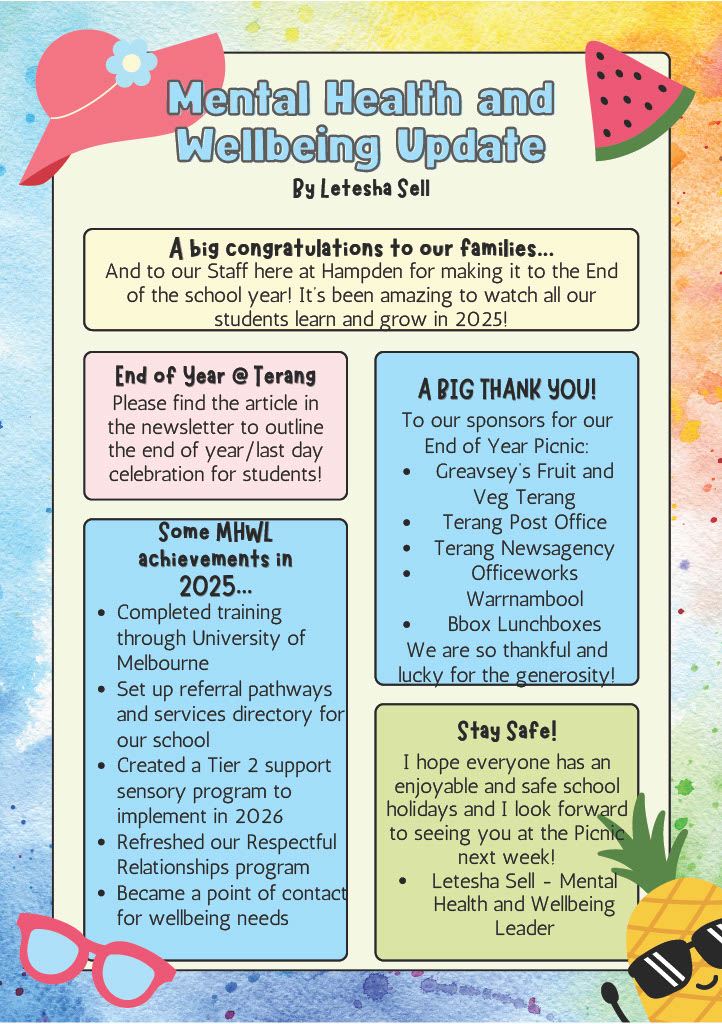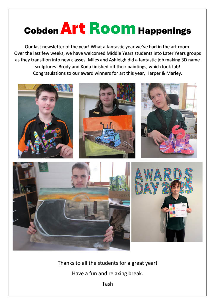 This is our final newsletter for 2025. Thank you to our families for their ongoing support to the school and their children. When we work together, we see the very best outcomes for our students.