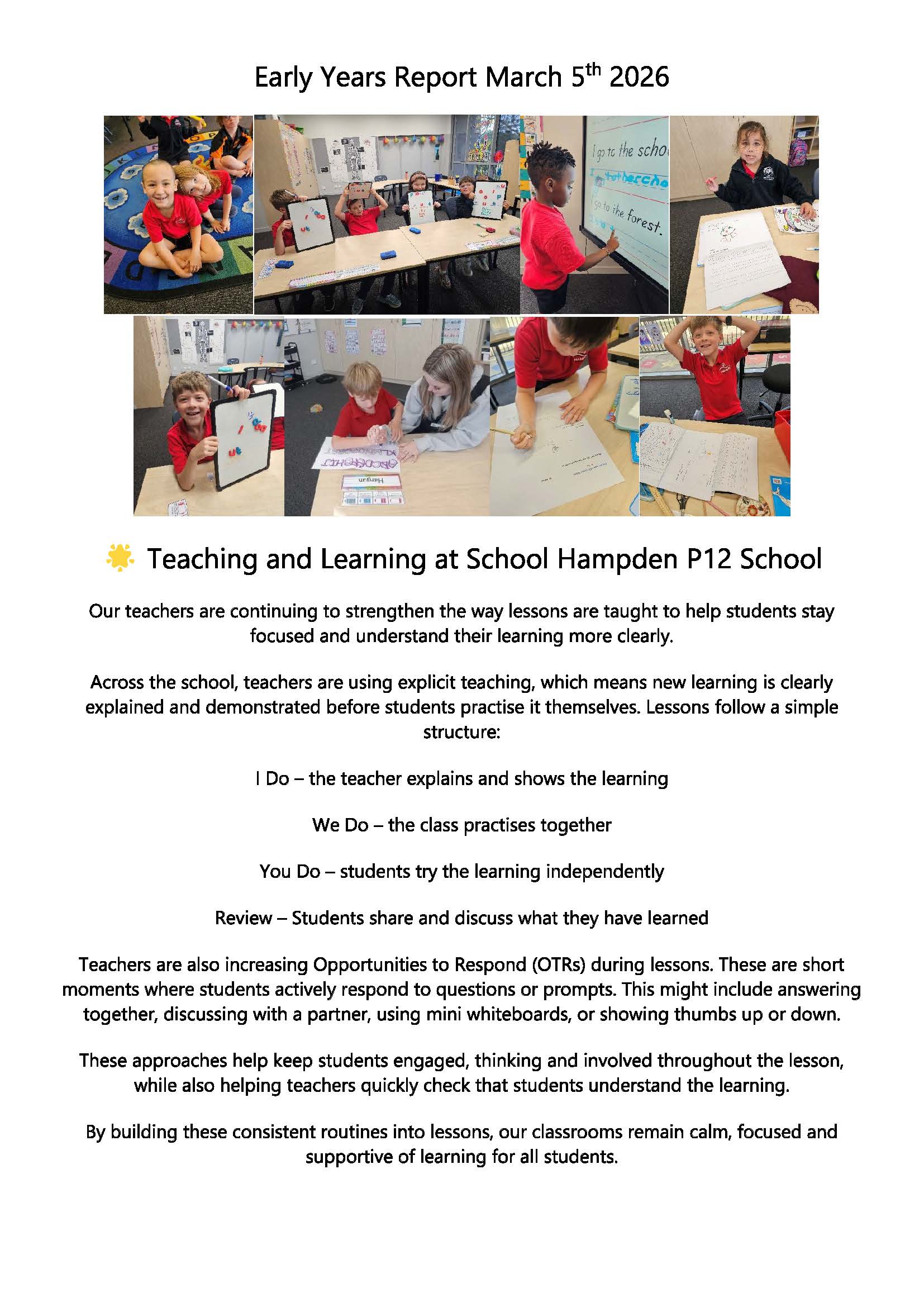 Staff professional learning this week is focusing on improving explicit teaching and student engagement in learning. Individual learning plans have been developed alongside our student support group meetings which took place last Monday. Thank you to all our families for making the time to discuss both the learning and well-being needs of your child.